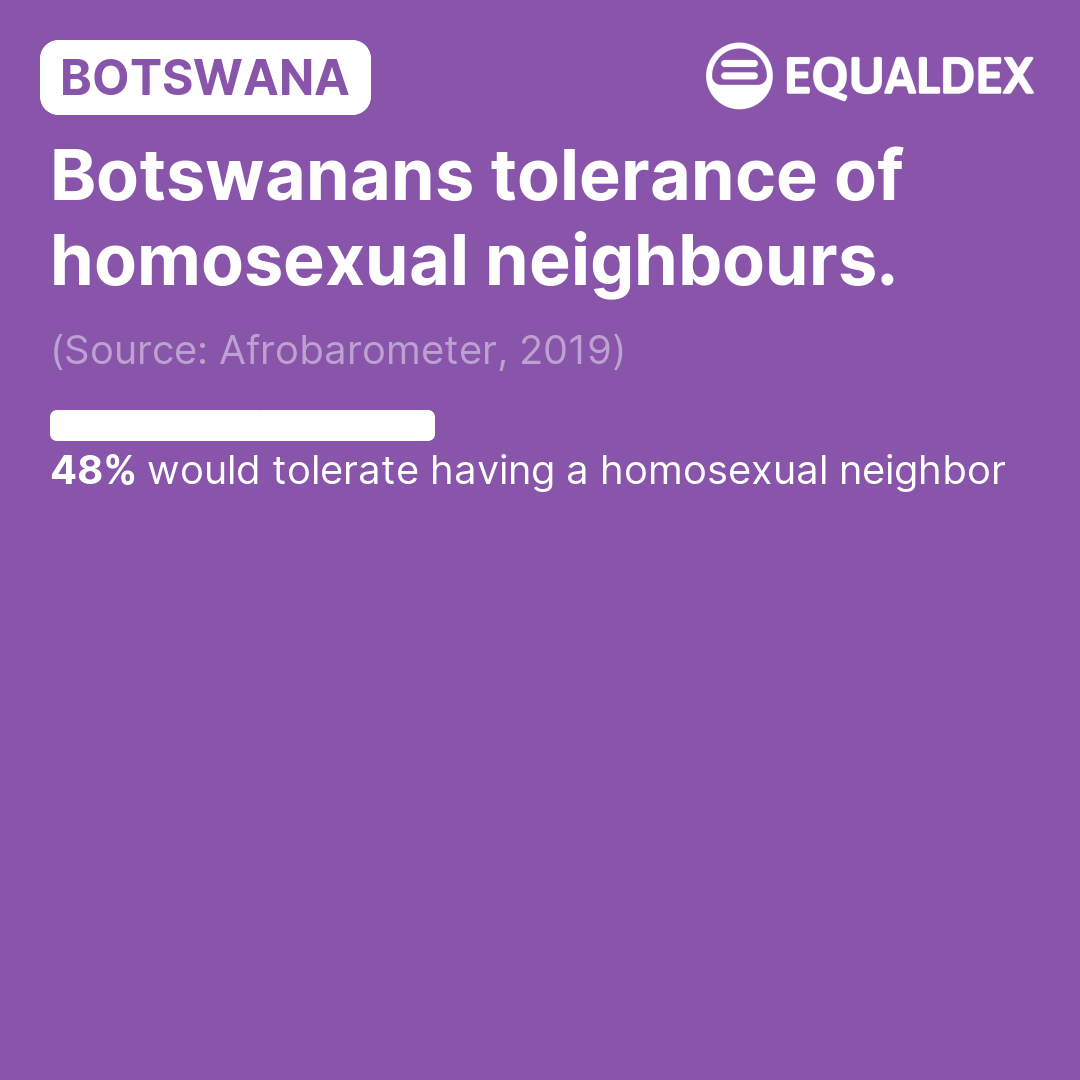 Botswana: Botswanans tolerance of homosexual neighbours.